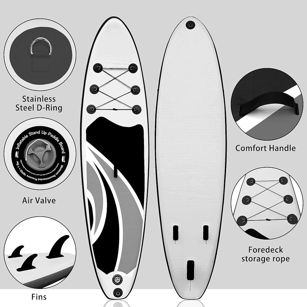 SUDOO Inflatable Stand Up Paddle Board 10‘6‘‘x33‘‘- Ultra-Light SUP with Backpack, Pump, Paddle, Coil Leash, 3 Fins, Repair Kit, Stable Design, Non-Slip EVA Deck for Adults & Youth of All Skill Levels