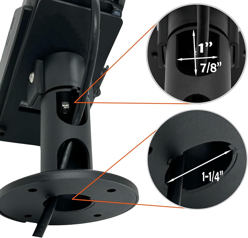 ✅【CABLE GUIDED HOLES】:The HILIPRO Swivel Metal Stand for Ingenico ISC480 features cable-guided holes, ensuring neat and organized cable management. These holes provide a streamlined path for cables, preventing tangling and clutter, which enhances the overall appearance of your checkout area. By securely guiding the cables, the stand not only maintains a tidy workspace but also protects the cables from wear and tear, ensuring longevity and reliability of your POS setup. This thoughtful design element makes installation and maintenance hassle-free, contributing to a more efficient and professional checkout experience.