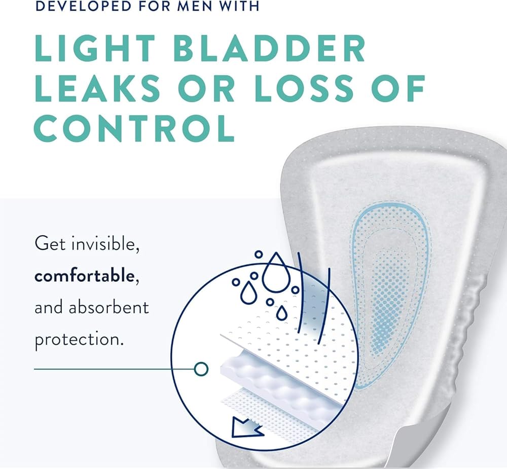 Prevail Male Guards Maximum Absorbency are designed specifically for men to wear in their own underwear and are securely held in place with an adhesive strip.