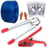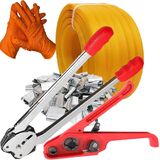 【Complete Banding Strapping Kit】 include 1*Strapping Tensioner, 1*Strapping Sealer, 1/2'' x 4000" Polypropylene hand Strapping Roll, 100pcs metal seals, a pair of gloves. Ideal for pallet storage and heavy bundles.