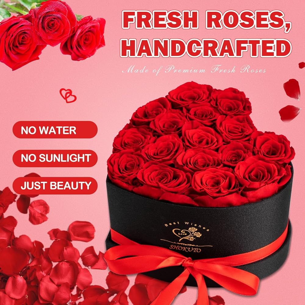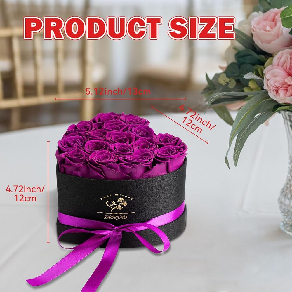 【Forever Roses in a Heart-Shaped Box】Express your everlasting love with our 16 Forever Pink Roses in a Heart-Shaped Gift Box. This exquisite box measured 7.9'' x 7.9'' x 5''.Contains 16 beautifully preserved roses, each 4-5cm in size. Unlike typical artificial flowers, our high-quality preserved flowers bouquet capture the natural beauty and enduring joy of fresh blooms. Perfectly arranged in a heart-shaped design, this gift ensures your gesture stands out in both appearance and emotional impact
