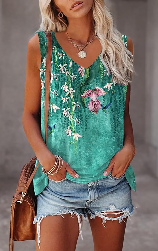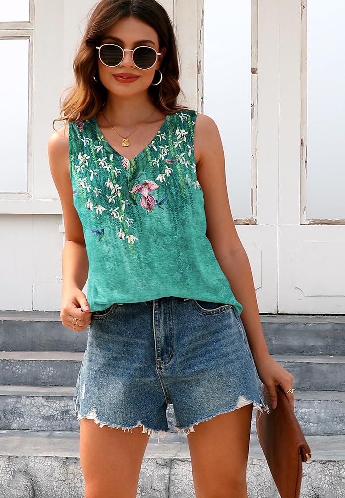 ETCYY Womens Summer Tops Sexy Tie Dye V Neck Tank Top Loose Fit Cute Printed Workout Sleeveless T Shirts