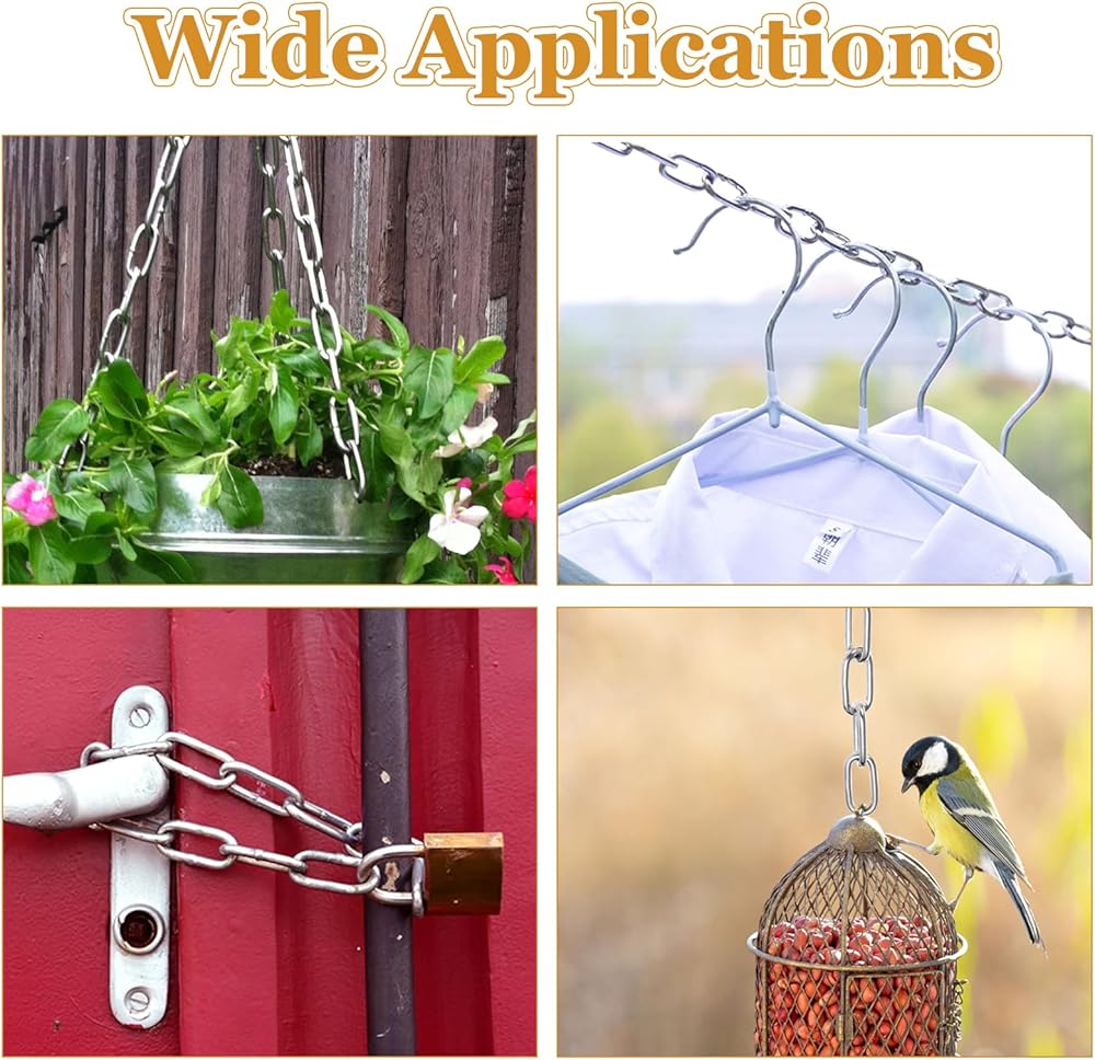 👍MUXHEL heavy duty chain is very suitable for hanging flower baskets, flower pots, paintings, wind chimes, clothes drying, chandeliers, bicycle locks, walking dogs, DIY decorations, door locks, and more.