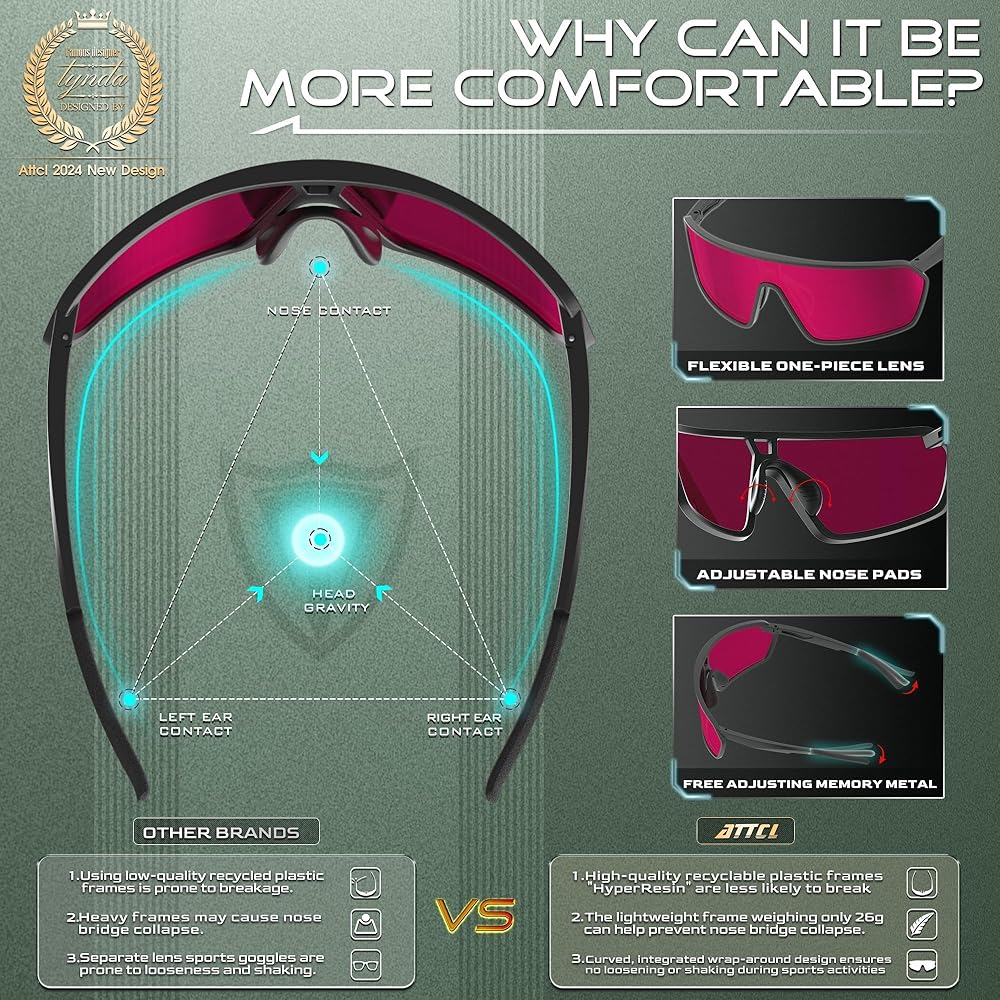 Why Need Cycling Glasses? - 【Safely Enjoy Your Ride!】- Bid farewell to hazards limiting your cycling freedom. Cycling without glasses exposes eyes to risks like flying debris, dust, insects, wind-induced dryness, irritation, and sunlight glare. ATTCL Cycling mens sunglasses offer 99.99% UV protection and boost visual clarity by over 30%, ensuring a comfortable and clear ride!