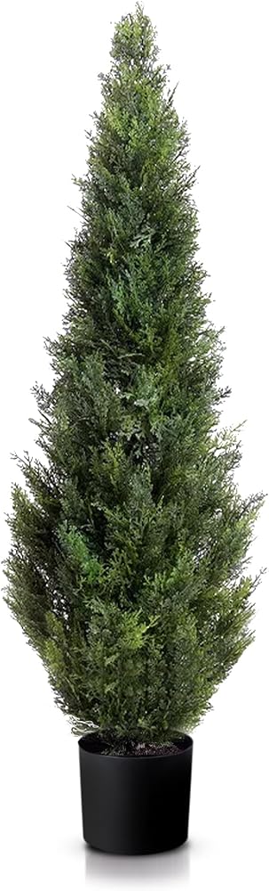 You are buying two 3 foot artificial cedar topiary trees potted. These trees are made of a strong, durable, dense, synthetic rubber; that is resistant to water, oils, heat and solvents making it perfect for many years of outdoor or indoor use. The container is weighted and measures about 6.5 inches tall and 6.5 inches wide. The pot is included in the total height.