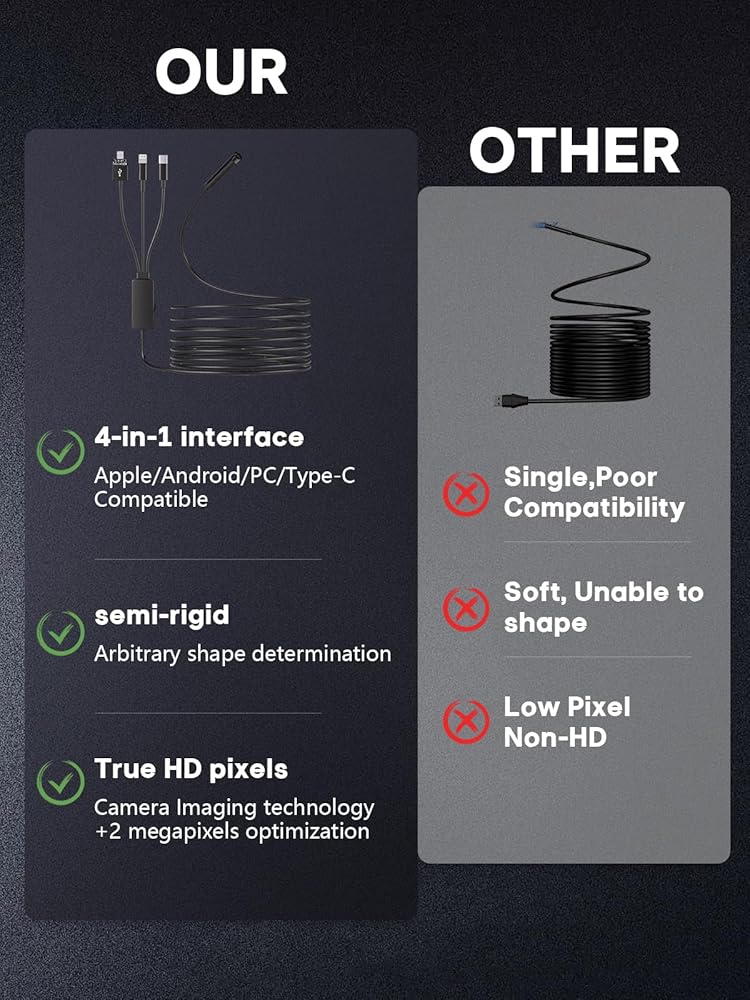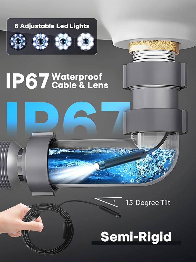 5. The IP67 waterproof design allows borescope to operate underwater up to 3.28 feet for 1 hour.