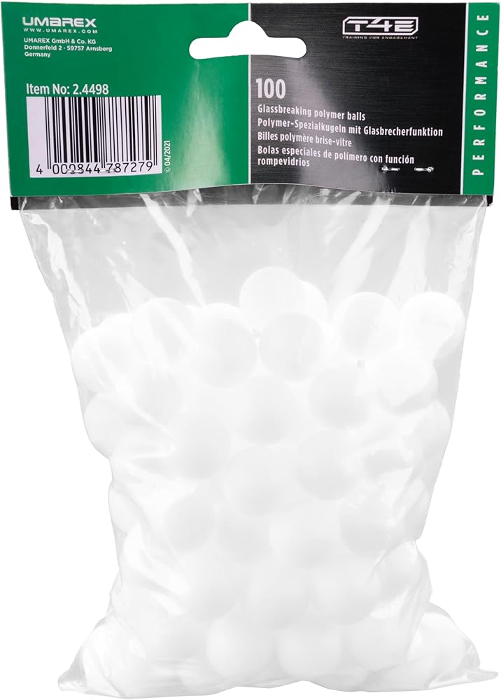 This T4E Quick Access Ball (QAB) is a .43 caliber solid polymer engineered round designed for smooth shooting performance. This type of ammunition transfers more impact energy than other T4E rounds. This solid projectile weighs in at 13.6 grains and can be used in T4E .43 caliber markers. Not intended for use on living beings. Will break glass at close range.