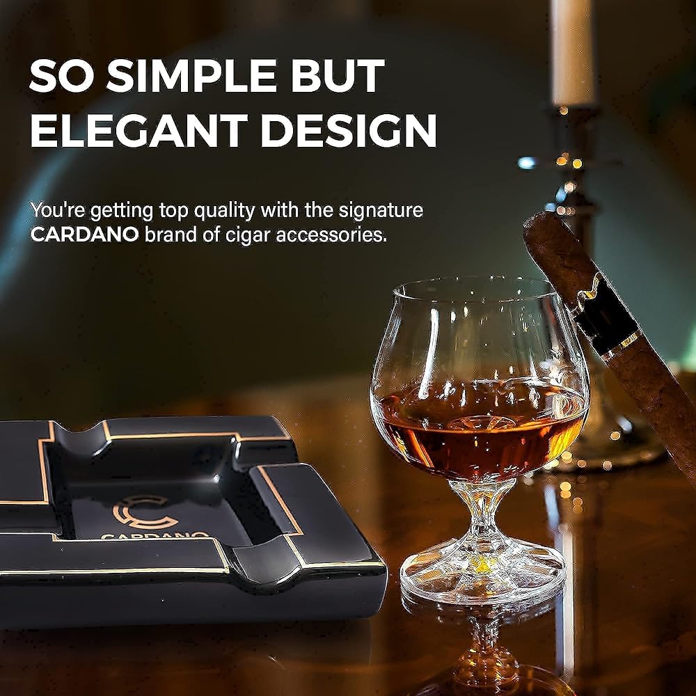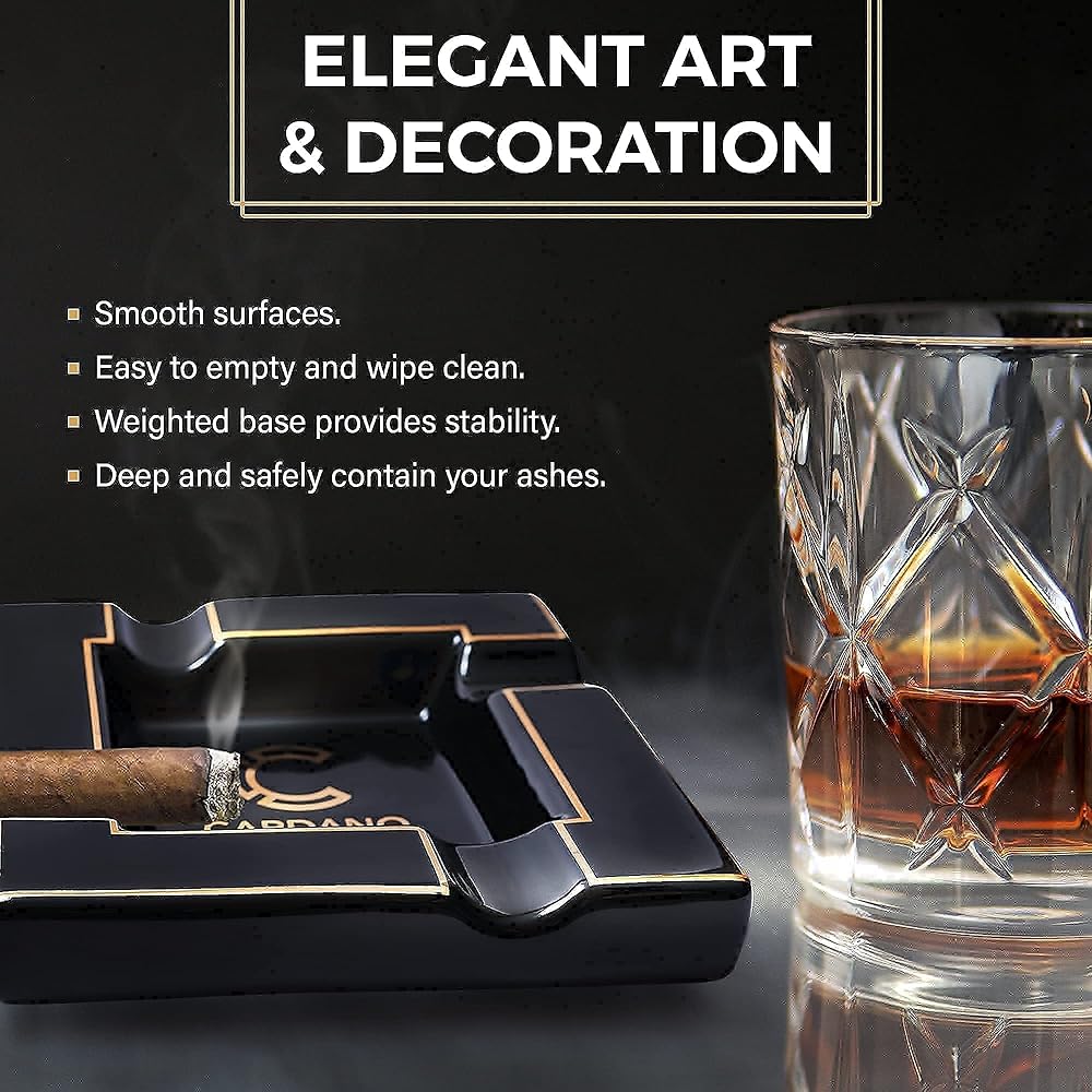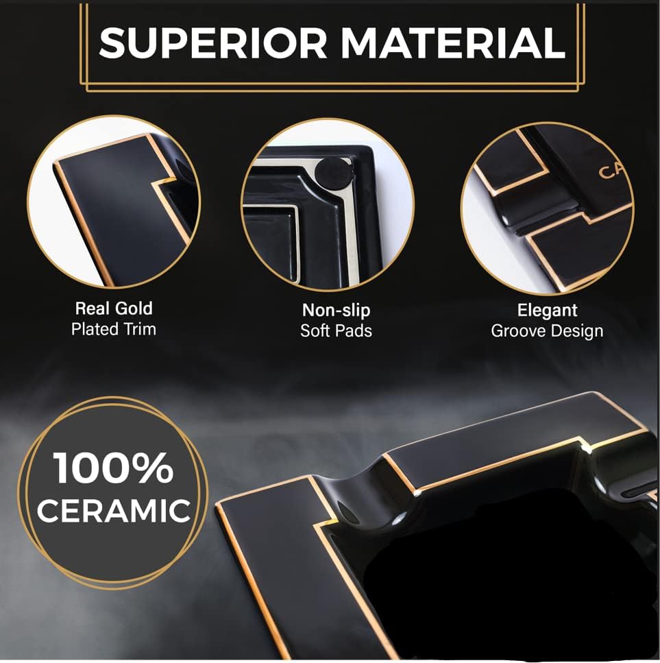 Black Onyx Ceramic Ash Tray with Multiple Large Rests for Cigar & Cigarette - Functional Decor for Indoor & Outdoor Use - Luxury Ashtray Accessory