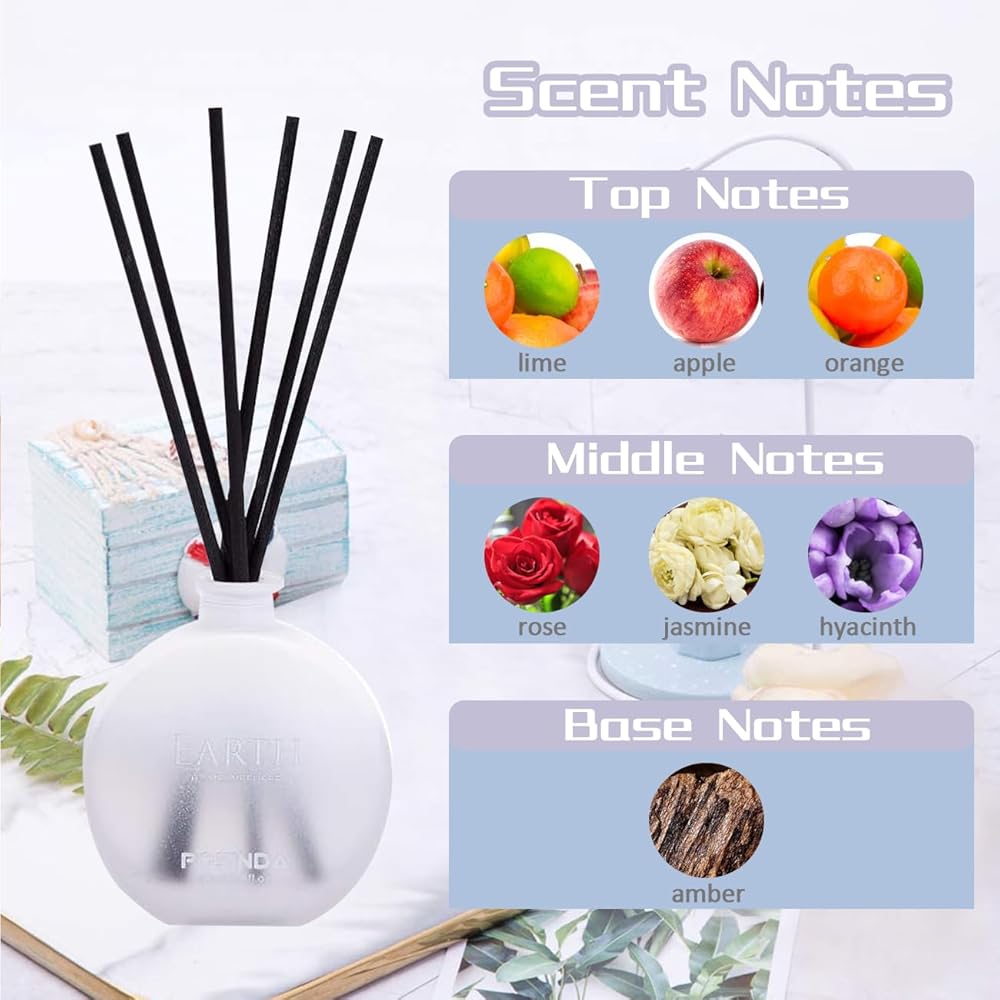 【Long-lasting Fragrance】--high concentration of fragrance oils with high-performance diffusion stick.This diffuser can be no heat source required, Our fragrance oils release scent for approximately 45 days. (2-5 fiber stick is recommended).