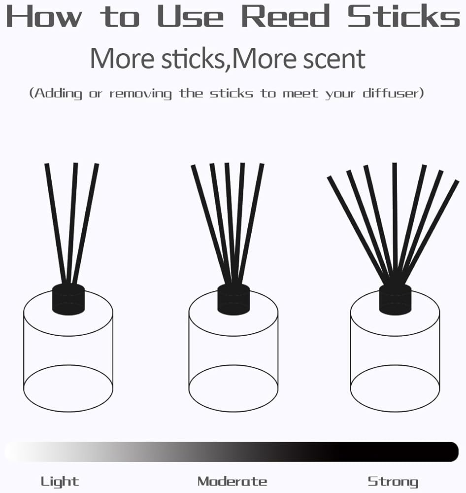 【Easy Scent Control】--You can choose to add or remove the number of reed sticks to match your taste. It takes 1 or 2 days for the sticks to soak in the scent. When the fragrance weakens, simply turn the reed sticks upside down or replace them with new ones.Normally more than 4 sticks could have strongly smell.