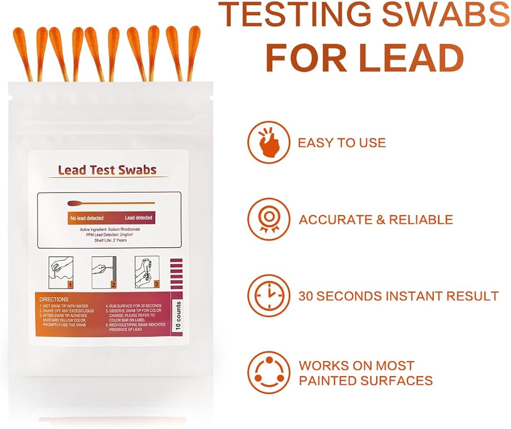 Lead Test Kit for Dishes, 10 Pcs Rapid Lead Test Swabs, Lead Testing Kit Use Water Only, Lead Paint Test Kit Home Use for All Surfaces, Results in 30 Seconds