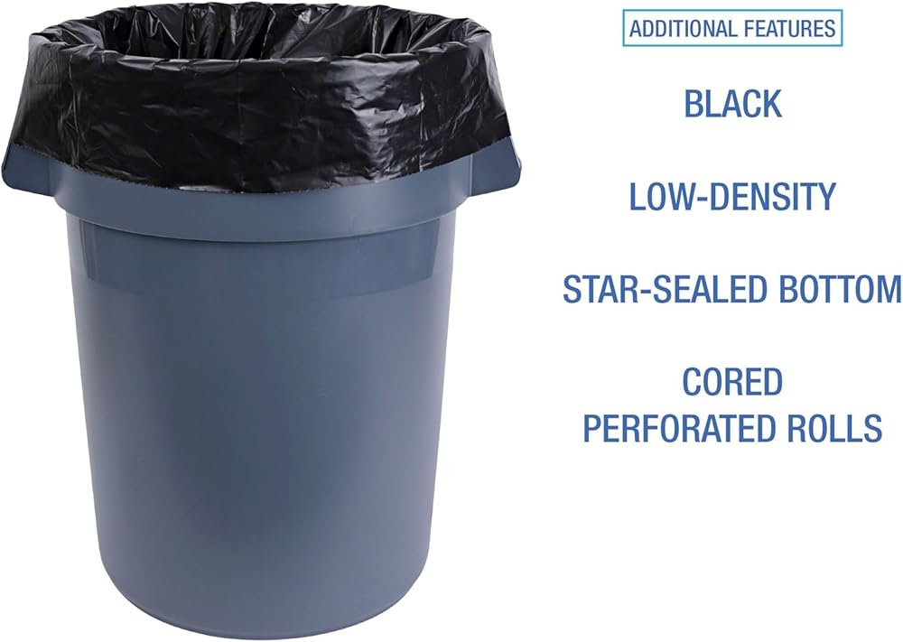Linear, low-density polyethylene provides industrial-strength performance at an affordable price. A quality drum liner you can rely on that's constructed with puncture and tear resistance for added strength and durability. The sturdy, star-seal bottom helps prevent leaks and keep heavier loads inside the bag. A quality drum liner that provides trusted waste collection. Cored rolls for dispensing on the go.
