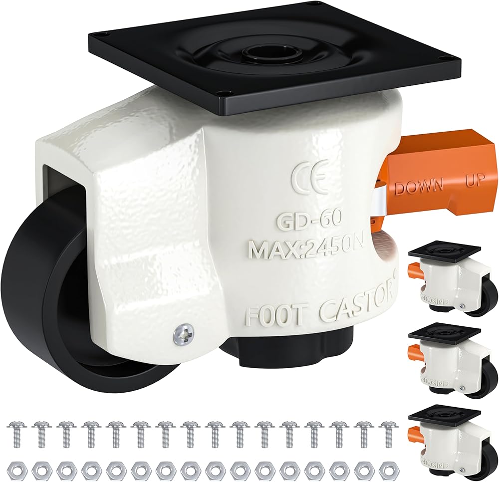 【UPGRADED DESIGN FOR EASY USE】NLShan leveling casters are now equipped with a ratchet arm for easy height adjustment. This upgraded design has been ergonomically engineered to enhance efficiency and reduce effort when adjusting the height of the retractable leveling machine caster.