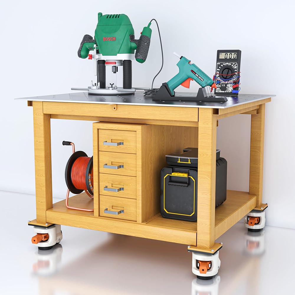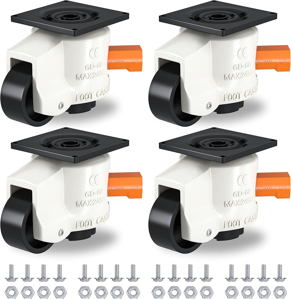 Leveling Casters Heavy Duty Set of 4 Workbench Castors: Adjustable &Retractable Castors with Nylon Wheels & Rubber Feet 2200 LBS Capcity for Furniture, Machine