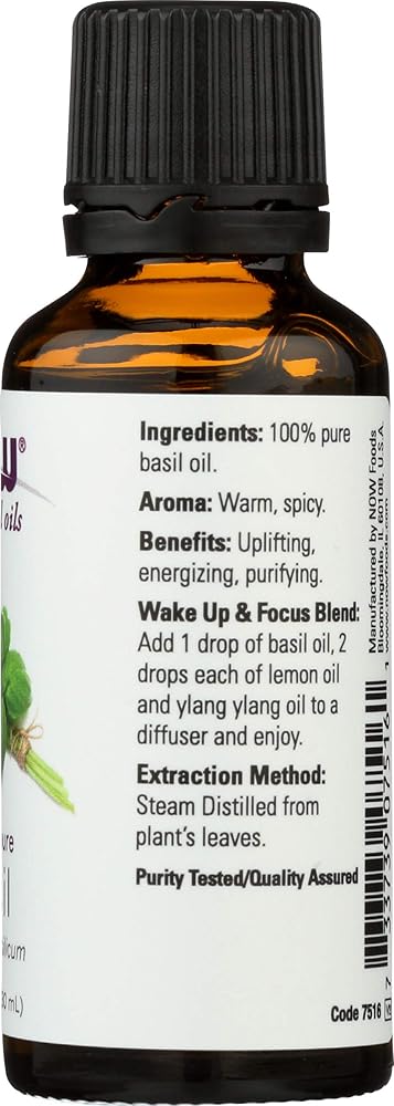 Attributes: Uplifting, energizing, purifying Wake Up & Focus Blend: Add 1 drop of basil oil, 2 drops each of lemon oil and ylang ylang oil to a diffuser and enjoy. Extraction Method: Steam Distilled from plant's leaves Physical Characteristics: Specific Gravity: 0.952-0.973 Refractive Index: 1.512-1.520 Purity Tested/Quality Assured