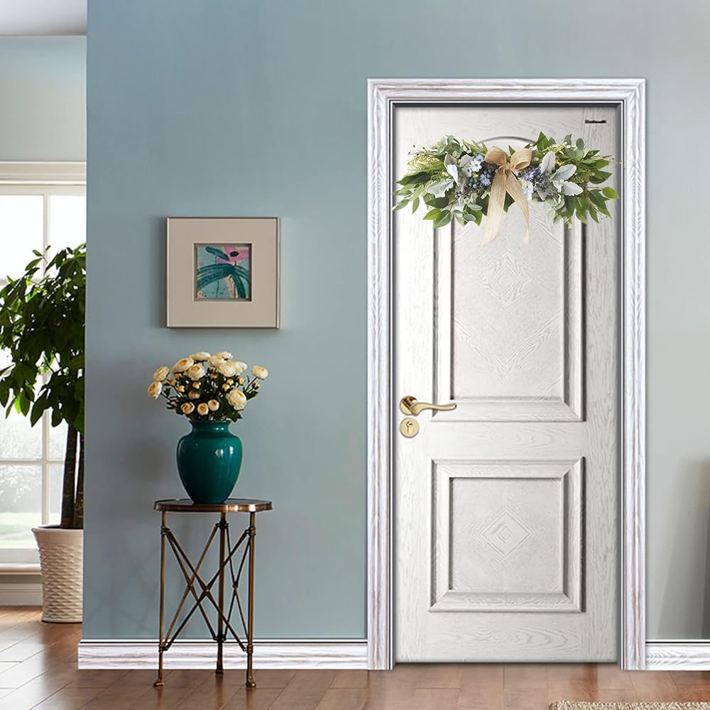 Floral Swag, Artificial Front Door Wreath Eucalyptus Leaves Garland, Artificial Mixed Eucalyptus Leaves Swag, Greenery Swag with Daisy Flower for Home Wall Wedding Party Decoration(#1)