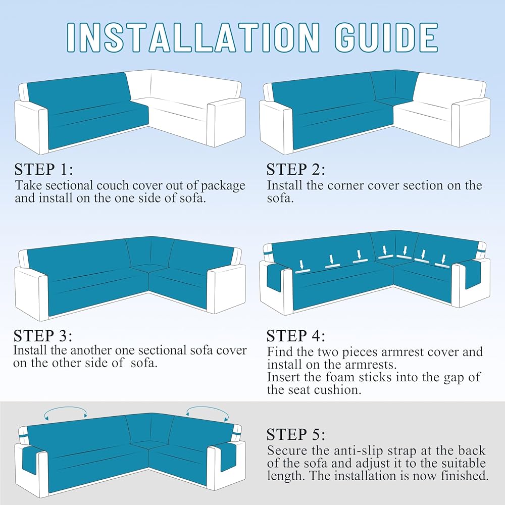 5 PIECE SET: This U-shaped sectional slipcover consists of five pieces: 2 sofa covers, 2 armrest covers, and 1 corner cover. This five-piece sofa cover for sectional design ensures a snug fit and provides complete coverage for your sectional sofa. It is suitable for various sofas. Please refer to our measurement guide before making your purchasing