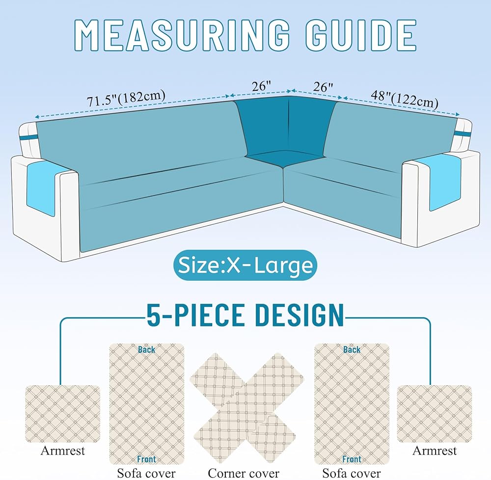 2. 5-Piece Design: The pet cover for sectional couch is five piece design, fit various kinds of sectionals sofas.