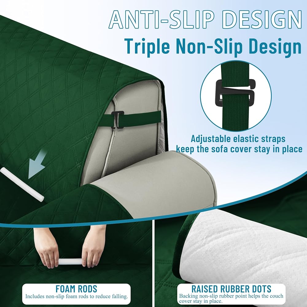 HIGH QUAILTY MATERIAL: This couch cover u shaped sectional is crafted with 4-layer fabric. The top layer is created grid design reinforced for style, while the middle layer is filled with soft foam for enhanced comfort and support. The bottom layer is designed with anti-slip rubber dots to keep the sectional couch cover for dogs washable securely in place