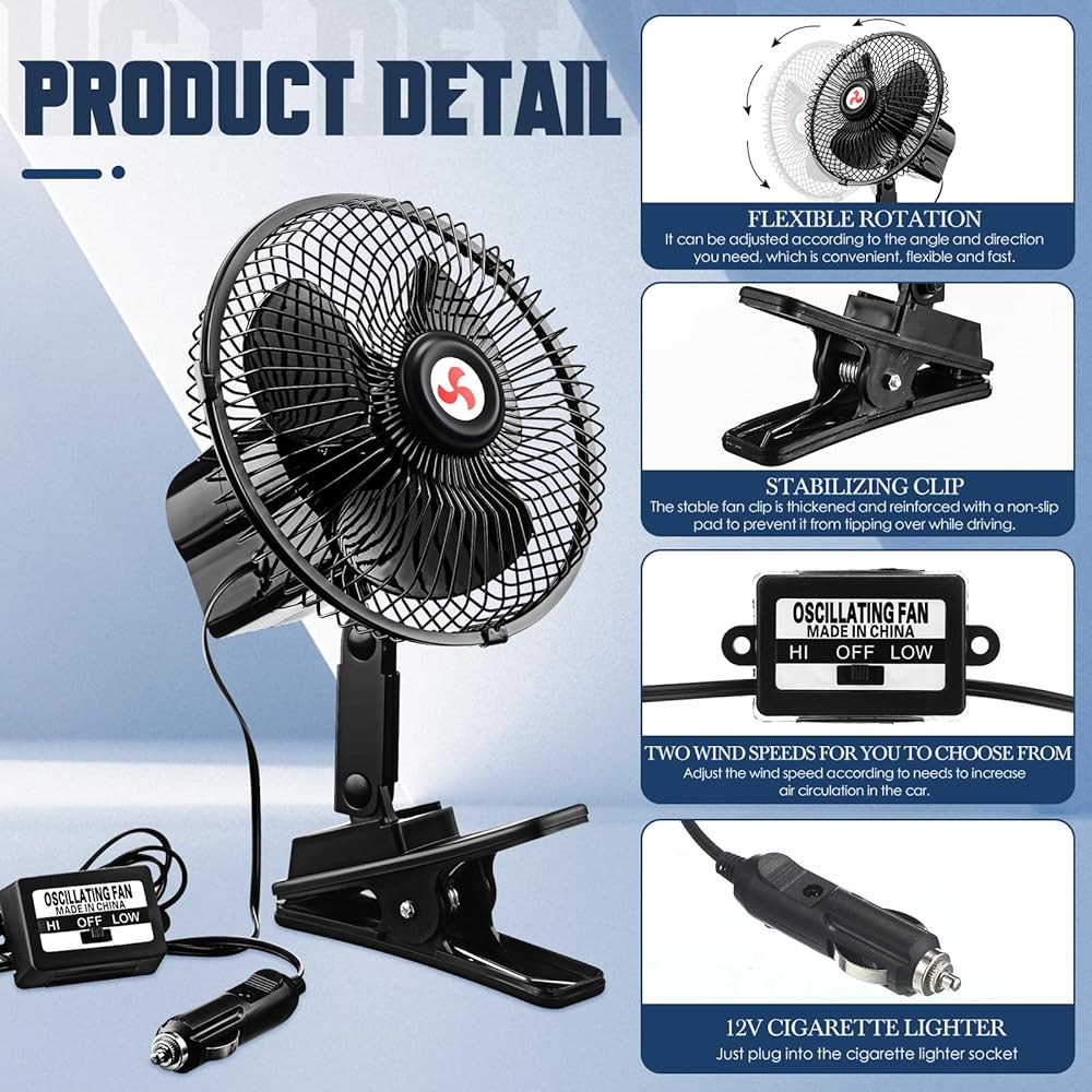 The 12v car cooling fan has the flexibility of two-speed settings, low and high, so you can regulate fan speed in accordance with your need.
