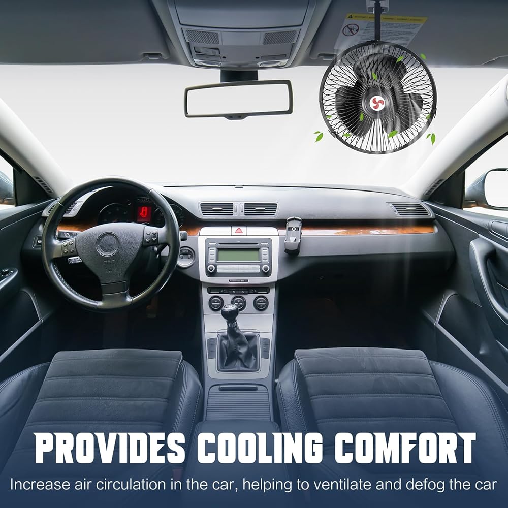 Encased in metal exterior, this electric fans for cars comes in an aesthetically pleasing black color, adding a touch of style to your car's interior. The size is comfortably compact, standing at approximately 8 inches, making it the suitable accessory for your vehicle.
