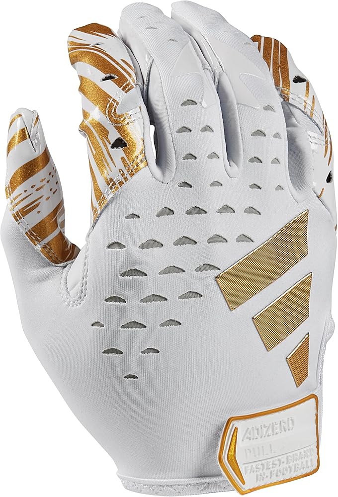 EXCLUSIVE PALM GRAPHICS: Limited availability! Always be ready to play with the Youth Adizero 13 Receiver's Glove from adidas! Designed to provide exceptional comfort and grip to keep up with intense gameplay. Featuring box fingertip construction to deliver a superior fit for your fingertips, without any pinching or tightness. It includes a custom molded tab with no-snag hook and loop closure to make sure it is always secure. With an Airprene breathable band for increased movement and to reduce heat buildup. Enhance your game with Youth Adizero 13 Football Gloves for receivers! Football receiver gloves that are carefully made with ergonomically designed support zones on fingers to allow for maximum flexibility and fit, assuring the highest level of performance available. The unique expansion gusset enables increased range of motion and dexterity and it has an adidas exclusive engineered performance fabric which provides compression fit and venting without binding. This pair of gloves provides the structure, support, and performance you deserve. These receiver gloves are designed with GripTack, an exclusive adidas palm treatment that ensures amazing grip and performance in all weather conditions, while AeroReady technology wicks away moisture and keeps your hands cool and dry. Plus, our receiver gloves include 4-way stretch multi-dimensional fabric that naturally mimics the movements and motion of your hand, delivering supreme accuracy that will keep you ready for the next play. adidas football gloves are certified to meet SFIA specifications required for in-game use. These adult men's football receiver gloves will always meet your needs for every game. Experience each play like never before with an Adizero 13 Glove!