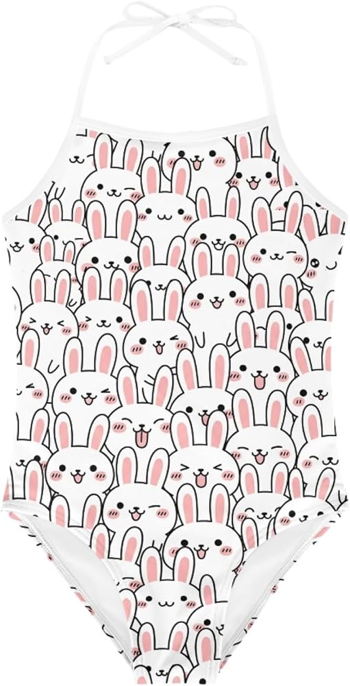 KiuLoam Cute Cartoon Bunny Girls One-Piece Swimsuit Quick Dry Beach Swim Bathing Suit for 3-8 Years Little Girls