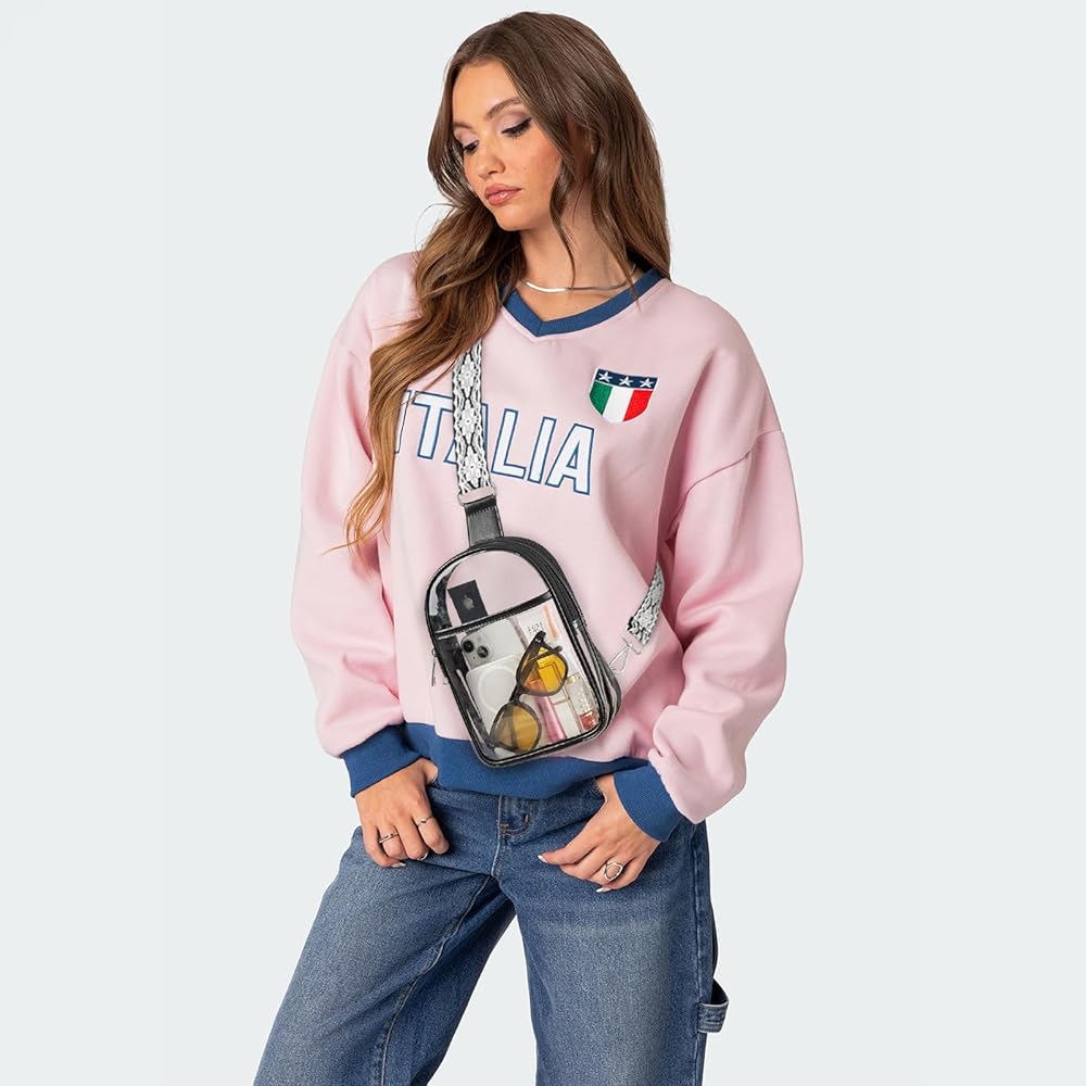 3 Pockets Clear Bag for Stadium Events with 2 Long Straps Sling Backpack Fanny Pack Concert Crossbody Purses for Women
