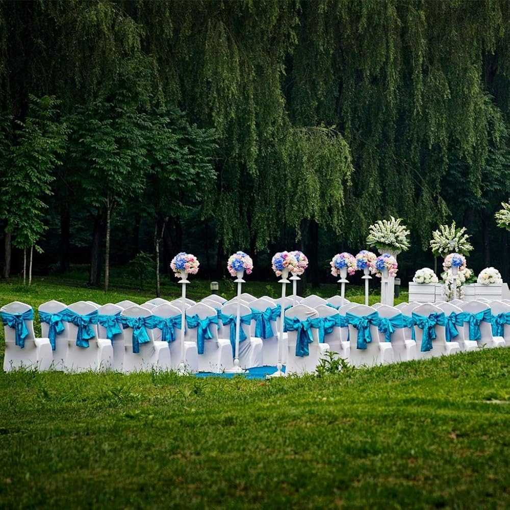 【Fold Ribbons in Package and Need Tie Bows by Yourself】6.7 x 108 inches(Width x Length),long enough to create multiple looks,great for DIY decorations.Which makes these satin chair ties a perfect choice for all them of party and wedding chairs.Each package includes chair sashes only,without chair covers