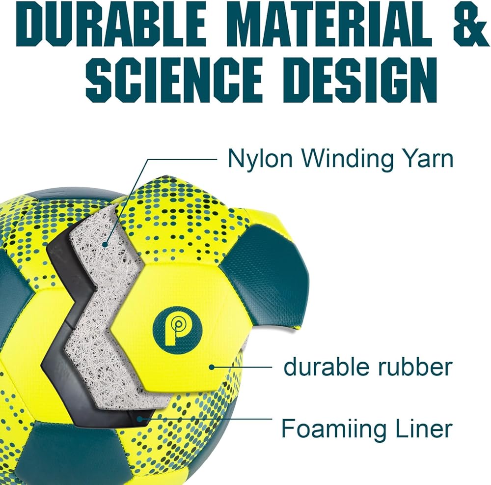 ⚽【High Durability Hand Bonding】Soccer shell Made of 32 PCS Technology Foaming PVC materials - Lining material: 4-layer polyester/cotton lining for best air retention, great waterproof, dirt and abrasion-resistant, superior control and accuracy with a soft touch and high durability. Hot bonded soccer ball panels enhances aerodynamics, providing enhanced precision and control during passes and shots. Suitable for practicing your juggling Outdoor, in the stadium or kicking around in the grass field