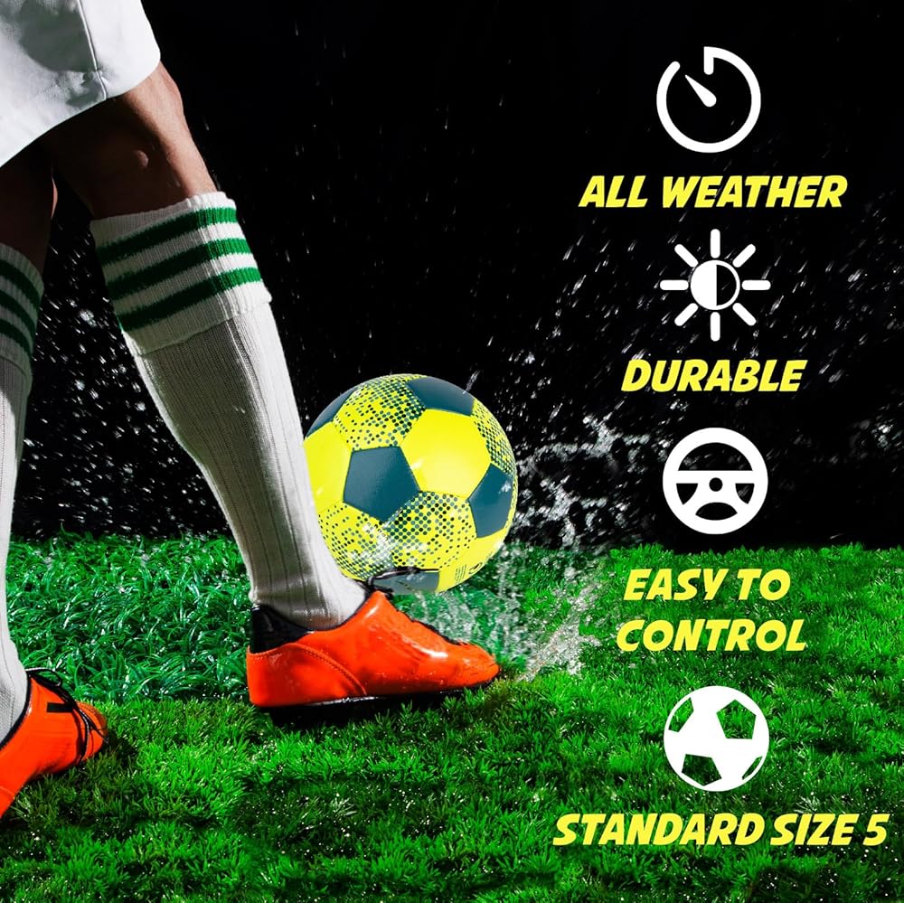⚽【Standard Official Size 5 Soccer Ball】Our Soccer is a standard official SIZE 5 Training Ball. Sport ball is made with the same materials as Professional Match Soccer Balls, suitable for ages 16+ Girls and Boys indoor/outdoor training use. Meets FIFA tests for circumference weight, rebound and water absorption