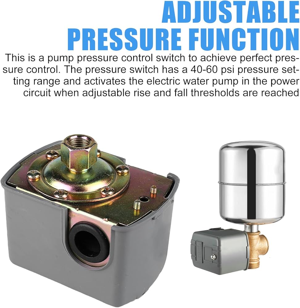 • 🔧【ADJUSTABLE PRESSURE FUNCTION】 This is a pressure switch for well pump that enables perfect pressure control. With a pressure setting range of 40-60 psi, and adjustable upper and lower threshold, the pressure switch will activate the electric water pump in the power circuit.
