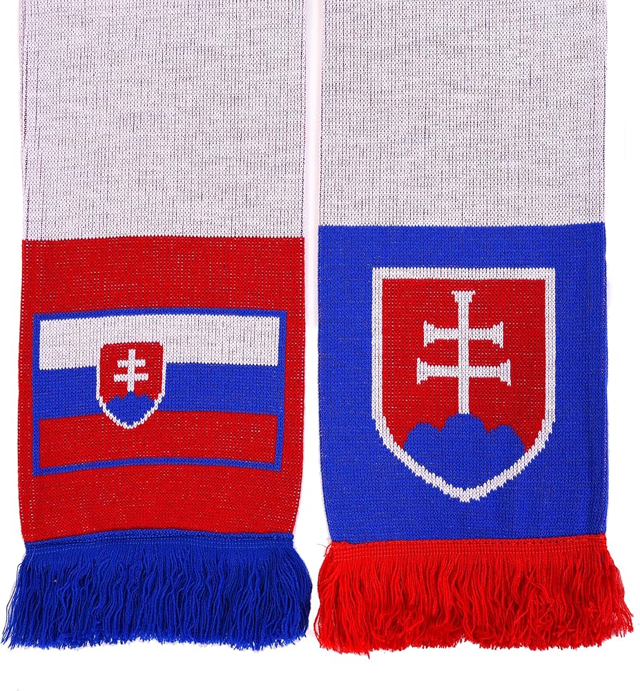 Vivid colors, high quality acrylic yarn, very soft to touch. Features two sides with "Slovensko" or "Slovakia" inscriptions, Slovakia flag on one end and Slovakia crest on the other end of each side. A must for any Slovakia fan and a great Slovakian souvenir for anyone. Manufactured in Europe according to the strictest requirements of European Union regulations.