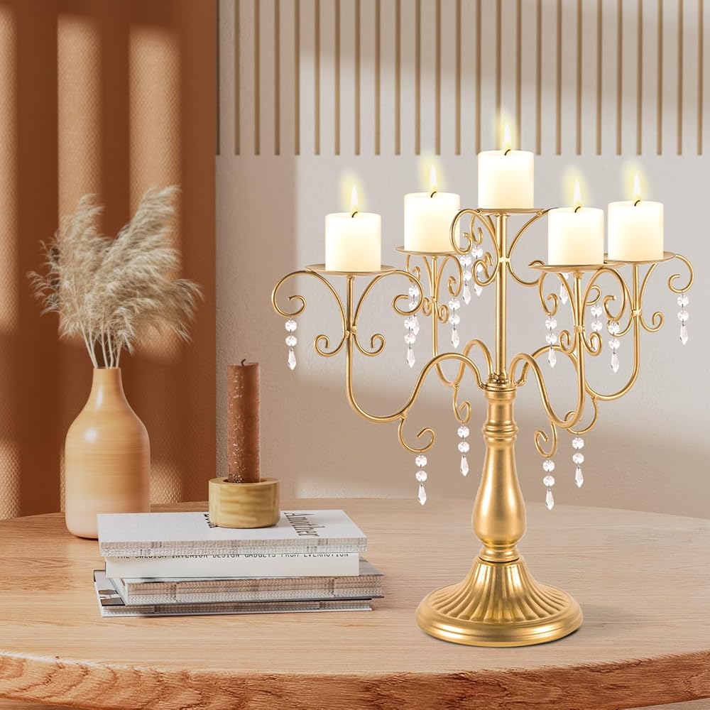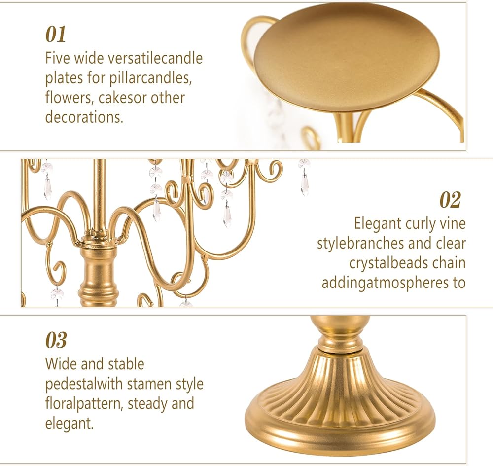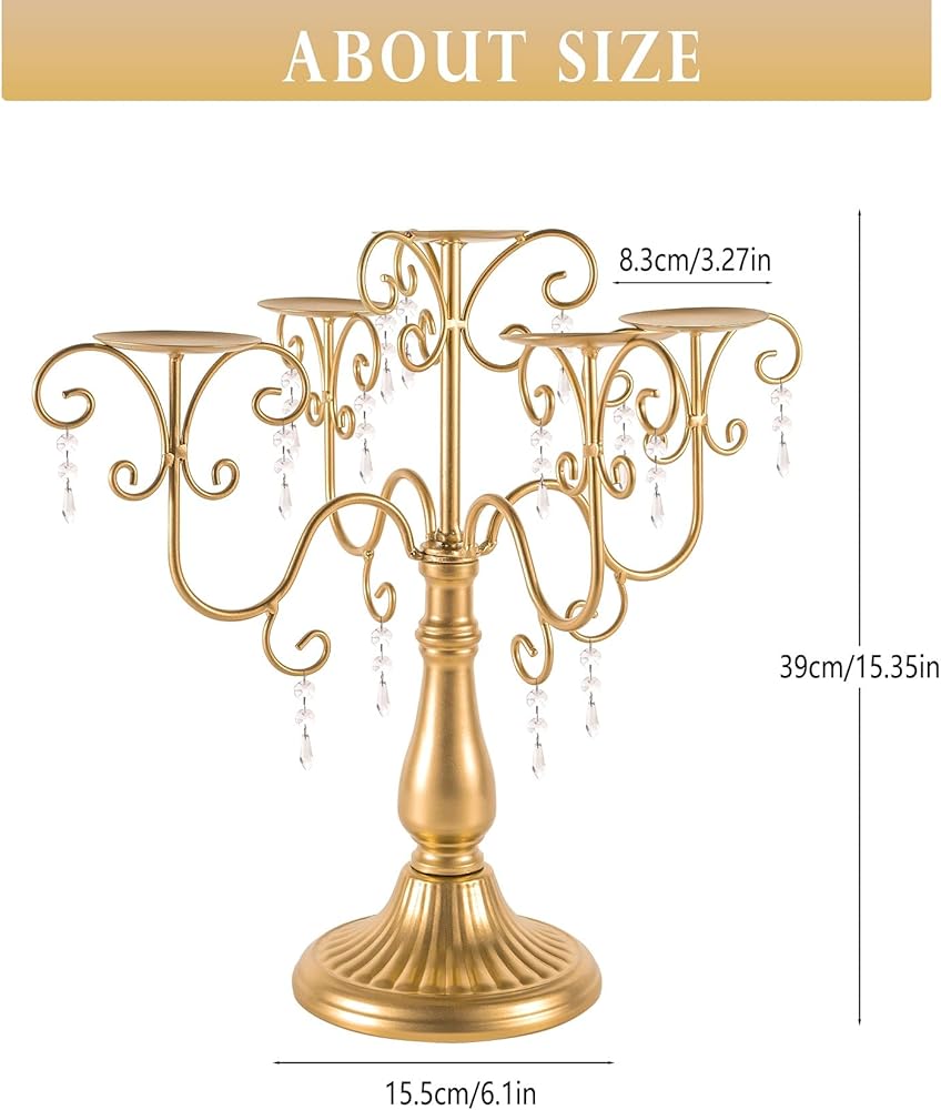 High-quality Craftsmanship: The 5 arm metal candelabra candle holders are made of quality metal, handcrafted and weldedand finished by skilled workers. Using melting, welding, grinding, polishing and other multiple processes, the surface is smooth and glossy. The candle plate have grooves in the to secure the candle in place, and the candle does not slide and tilt, but stays upright, very sturdy and nicely built.