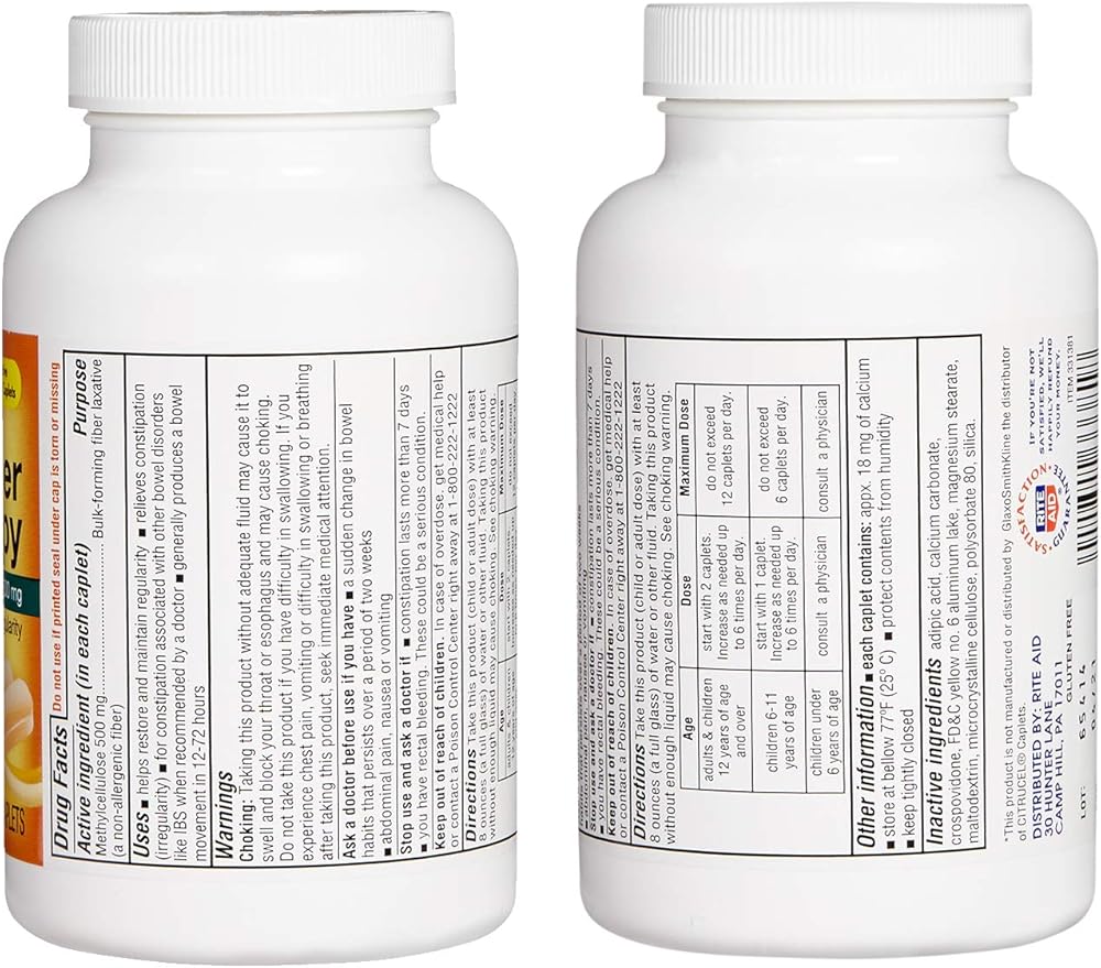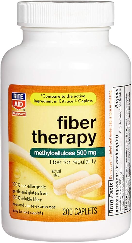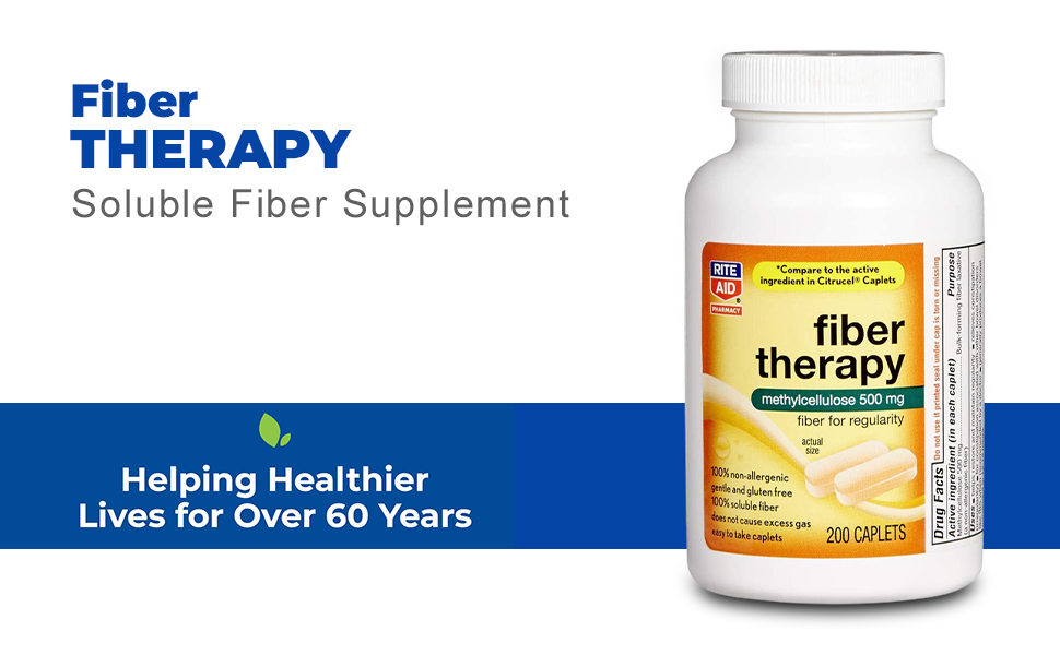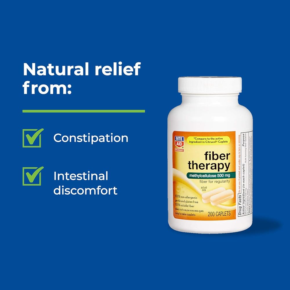 100% NON-ALLERGENIC: Get reliable constipation relief with Rite Aid Fiber Therapy caplets. Containing methylcellulose 500mg, 100% soluble fiber for regularity, our gentle and gluten free formula is safe for those with gluten sensitivities or allergies.