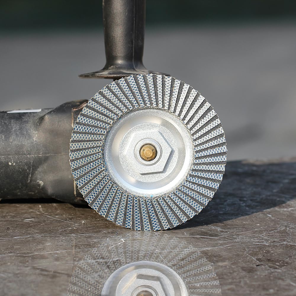 Be made of metal bonded diamond flaps combined with silicon carbide flaps, which results in fast material removal with a soft and smooth feel