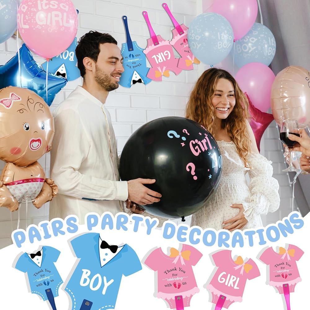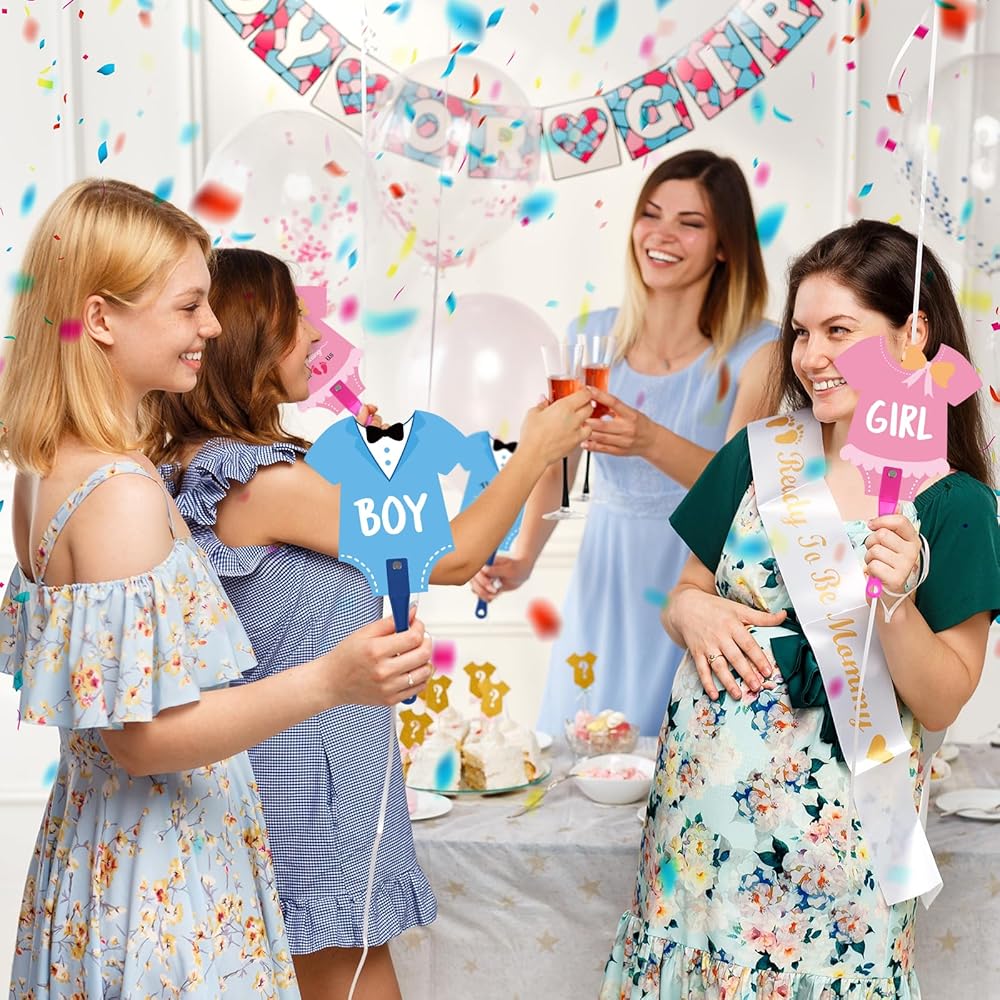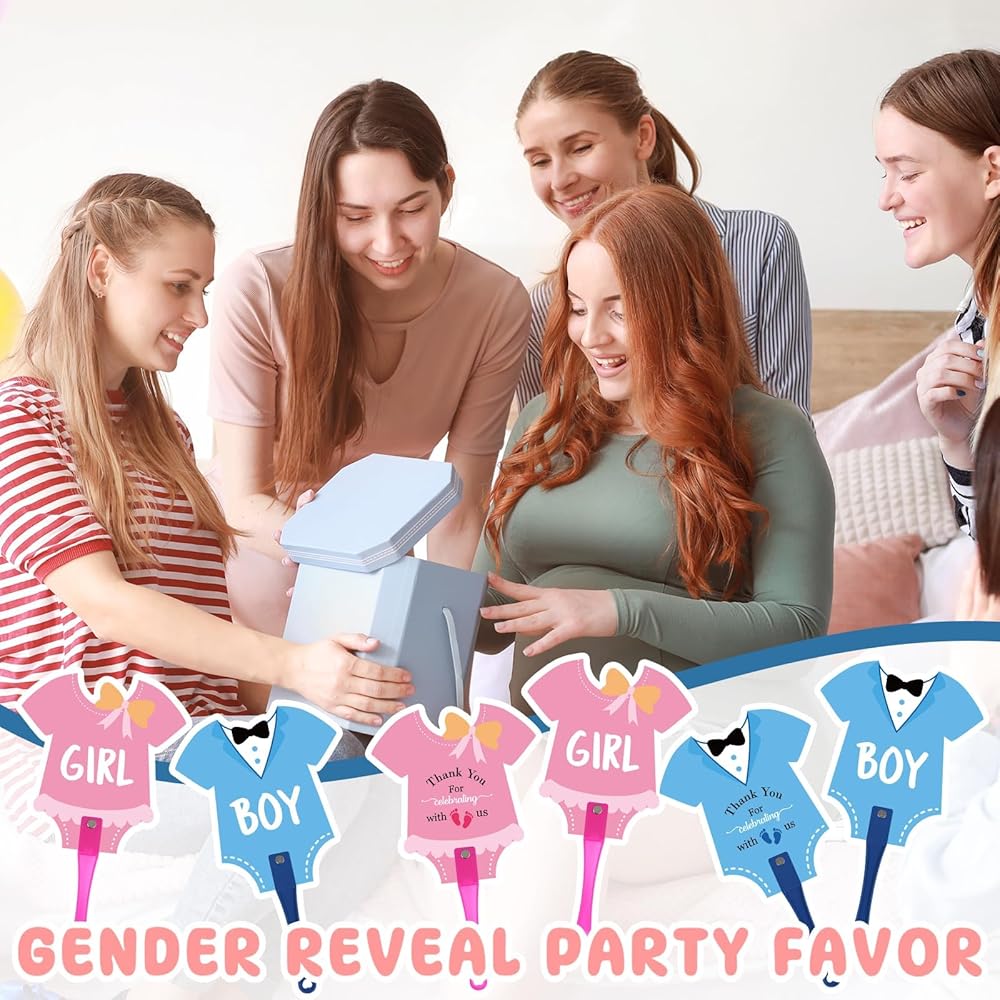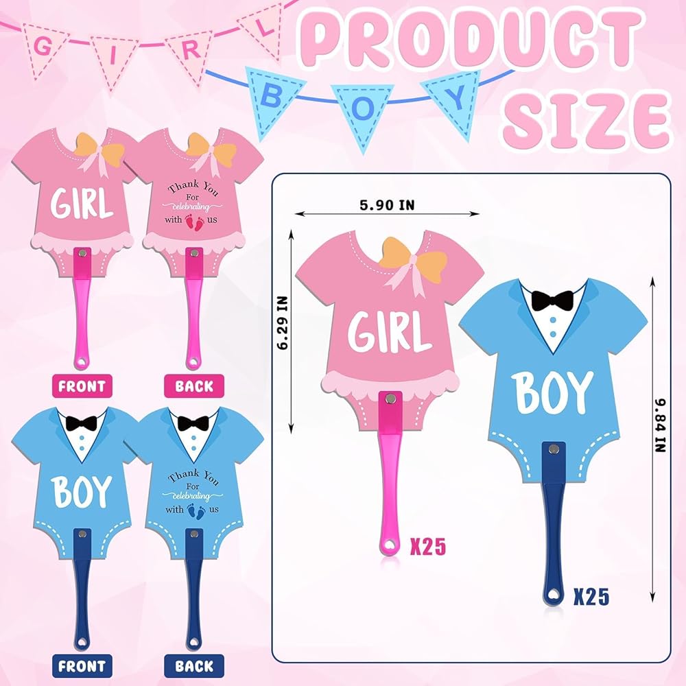 Baby Shower Hand Fans: These plastic hand fans are designed with two adorable baby clothes motifs, the front and back have different patterns, the front has ‘girl' and ‘boy', and the back is printed with ‘Thank you for celebrating with us! ‘Thank you for celebrating with us' on the front and ‘Thank you for celebrating with us' on the back, easy to bring joy and fun to your party, a great gift for baby shower guests!