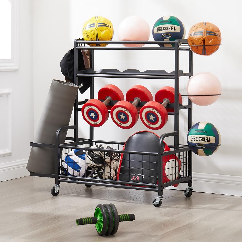 Easily move your sports gear around with the mobile cart feature, allowing you to transport your equipment wherever it's needed in your garage or home gym