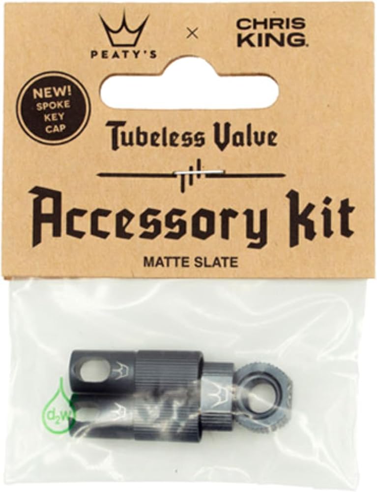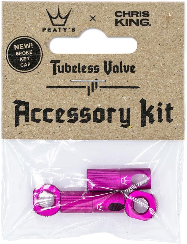 Accessory kits allow you to upgrade your Mk1 valves to have the spoke key caps or to mix and match color combinations Kit includes 1 spoke key cap, 1 valve tool cap, and 2 locking nuts Available in all 11 Chris King colorways Compatible with 42mm and 60mm Peaty s valves Accessory Kit AL7075 Black