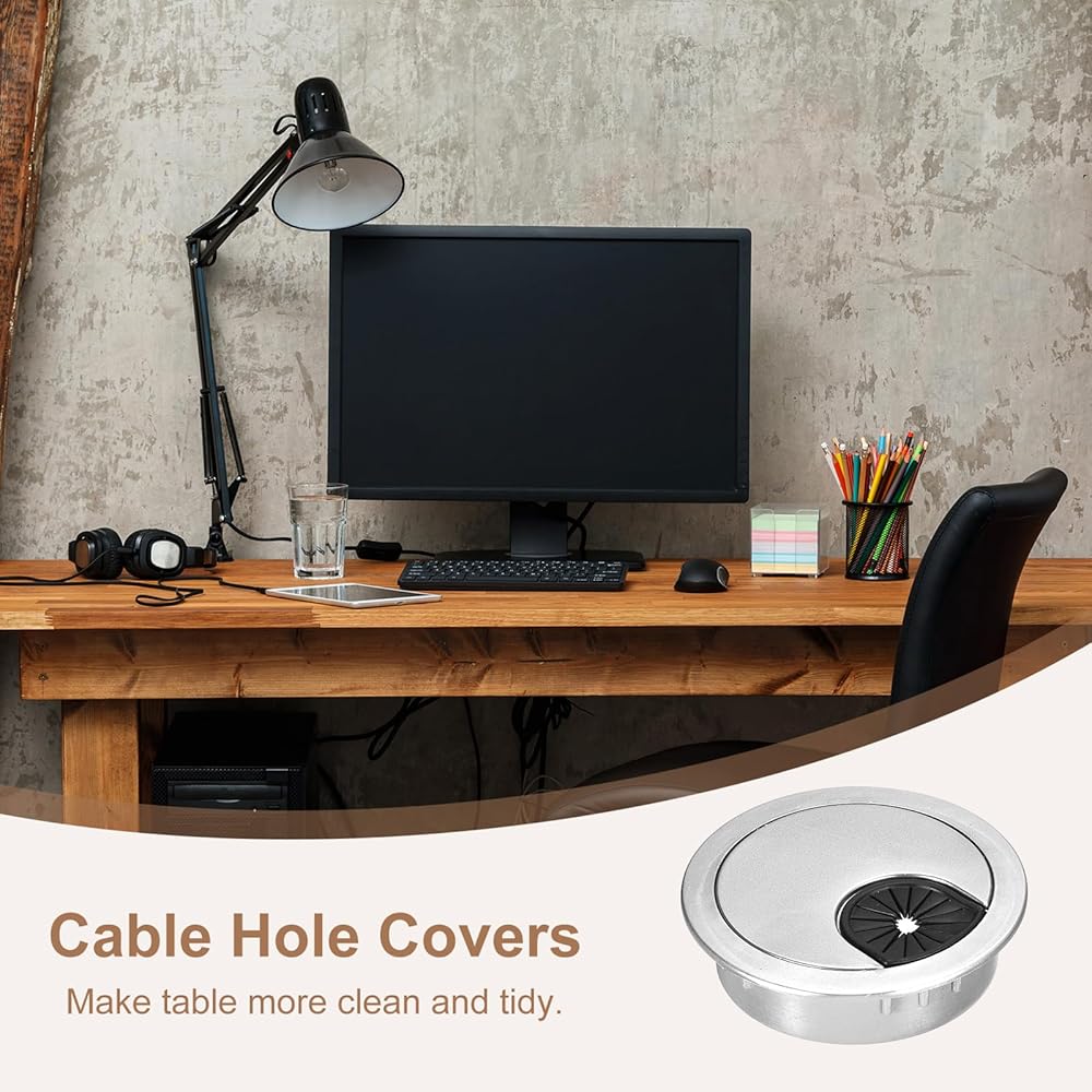 [Easy Installation] - Fast and simple to fasten, just measure the hole diameter and then mount it directly, or drill a hole according to the diameter of the mounting hole and insert the desk cable grommet into the hole.