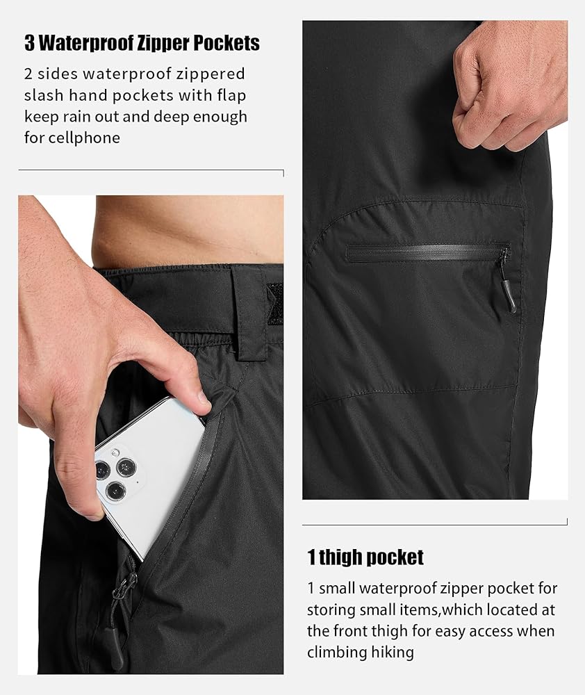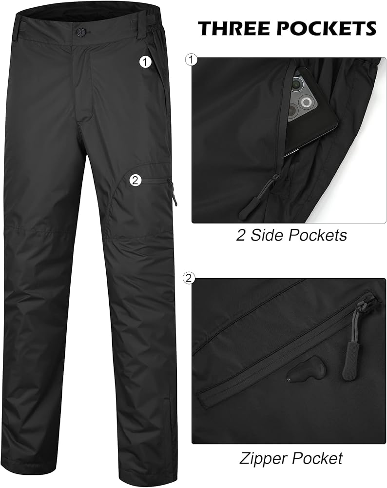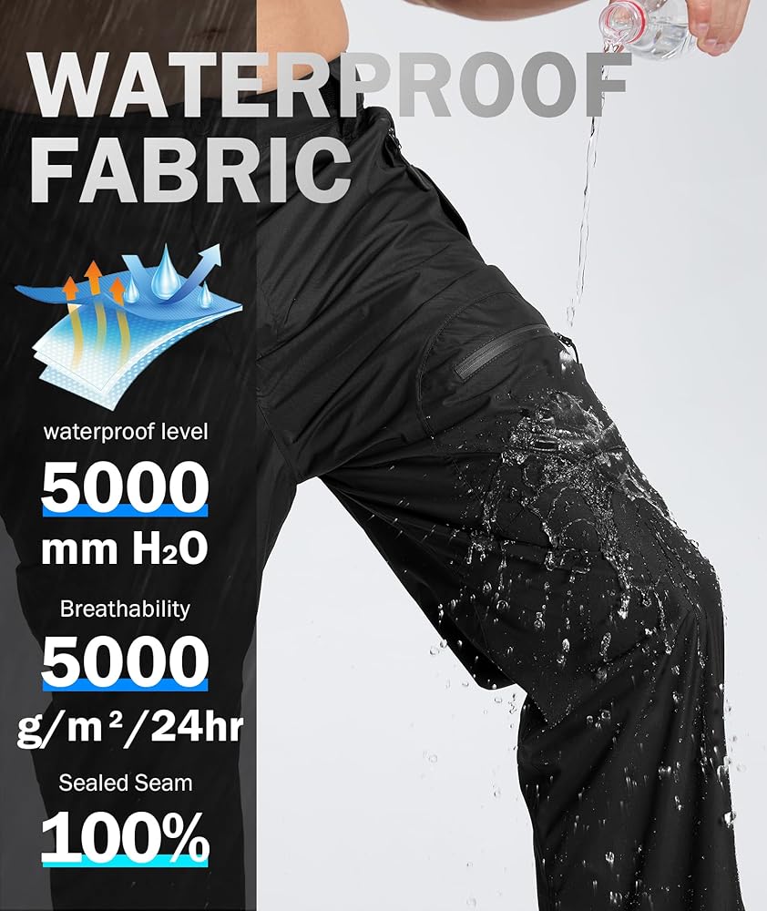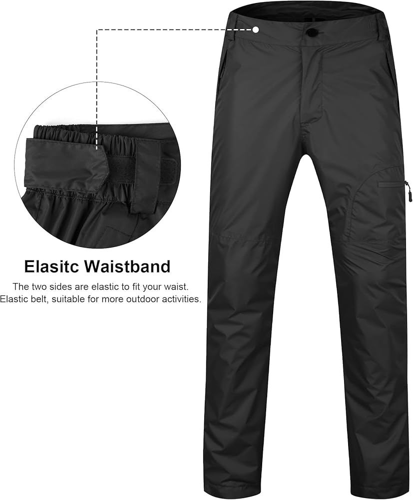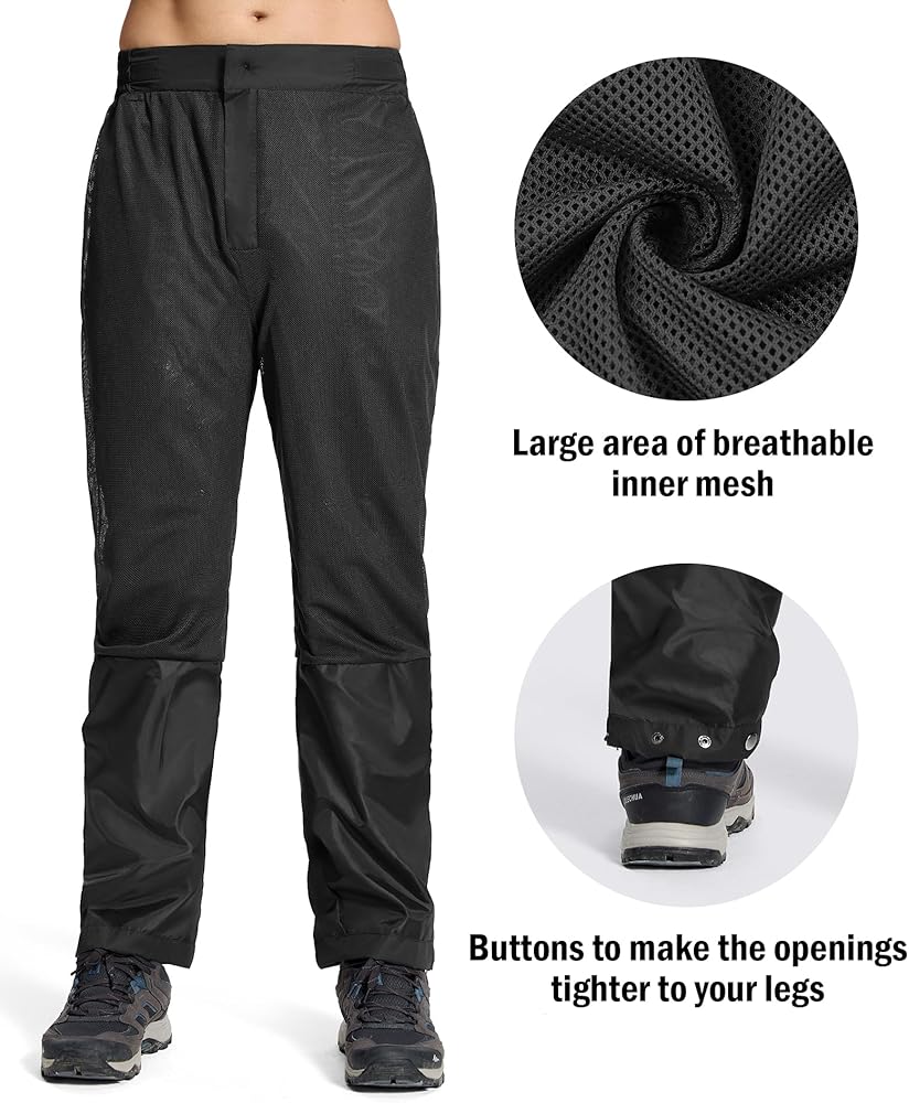Mens Hiking Rain Pants:superior waterproof shell fabric feature with Watertight Ⅳ, Breathability rating: 5000g/m2/24hr.Also, it keep you all-day dry in overcast and rainy,even in cold months.