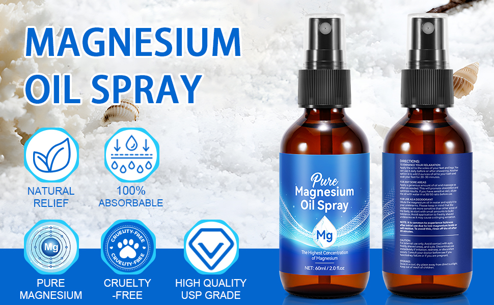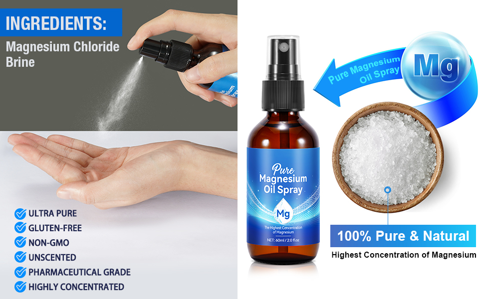 NATURAL INGREDIENTS: Our pure magnesium oil spray is made from high-quality magnesium chloride sourced from natural minerals. It is free from artificial additives, fragrances, and preservatives, ensuring a pure and natural product.