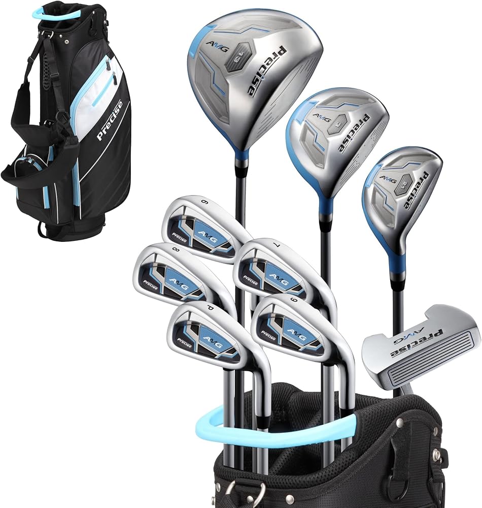 Precise AMG Complete Womens Golf Clubs Set, Includes Driver, Fairway, Hybrid, 6-PW Irons, Putter, Stand Bag, 3 H/C's, Golf Clubs Women Right Handed, Regular & Petite Sizes