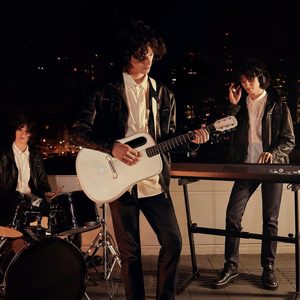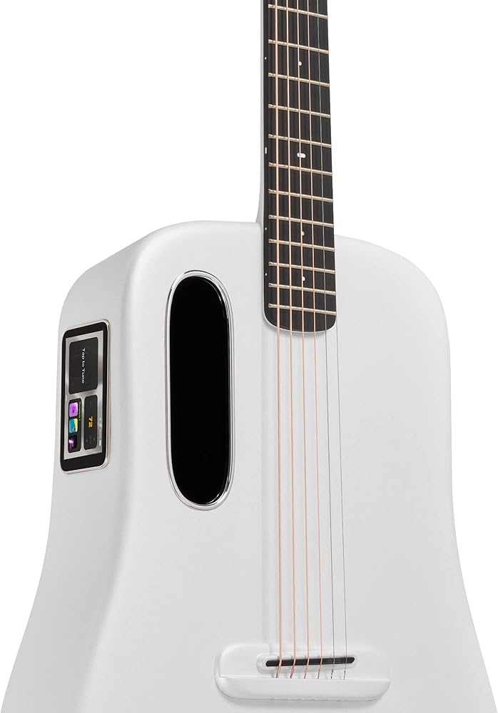 The ME 3 38" Touchscreen Acoustic Electric in White is smartguitar is designed to be the best companion of your musical adventure. With a multi-touch display, the HILAVA OS and incredible apps, LAVA ME 3 will reinvent the way you make music. A 3.5-inch touchscreen is seamlessly integrated into the guitar and puts everything you need right at your fingertips. The HILAVA OS offers a lightweight interactive experience without mobile connection. It supports Wi-Fi, Bluetooth, and auto-syncs your projects to the lavaCloud. Tuner, metronome, recorder. Essential tools all in one place. No more ambient noise, capture the crystal-clear sound of your playing. Dozens of advanced algorithms combined with FreeBoost 2.0 technology create a world of immersive sound effects without amplifiers or pedals. Dynamically animated cover art brings music to life. Discover the story behind each sound effect. Choose one and listen. Utilizing effects has never been easier. Just like filters, you can customize the specific parameters to shape your own sounds. Powered by our most advanced audio algorithms and the FreeBoost 2.0 technology, each effect is built to be exceptionally rich and unique. With sound detection technology, the Practice App senses the accuracy and stability of your playing and provides relevant guidance for improvement. Real-time feedback is a positive incentive to your practice, inspiring you to take on exciting challenges and make excellent progress. Get a comprehensive picture of each practice. No cable. Pick a groove, record and share music straightaway. With the Loops, you can play every role in a band. New Honeycomb structure, AirSonic 2 carbon fiber and 4-MASS technology take the acoustic quality of LAVA ME 3 to a new level.