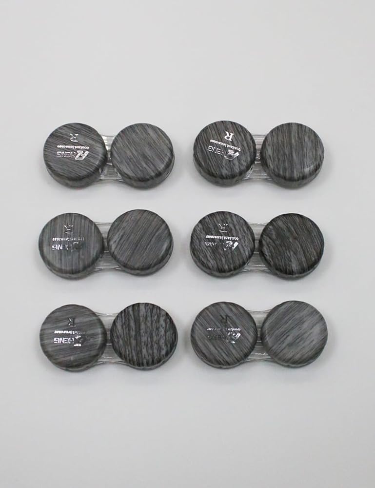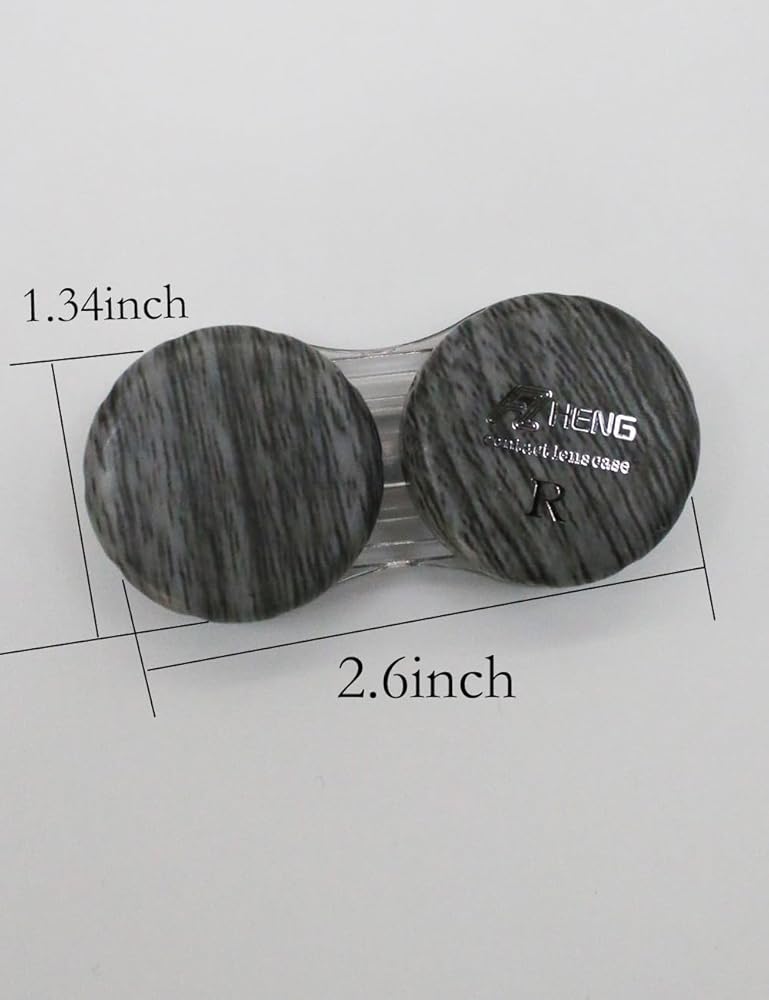 Color: Gray Size: 2.60"L x 1.34"W x 0.60''H Material: Plastic Package: 6 pcs Introducing our Wood Grain Contact Lens Dual Case, the perfect solution for organizing and protecting your daily contact lenses. With its built-in leather ring and watertight design, this contact lens care case ensures your lenses stay safe and secure wherever you go. Its compact size makes it an ideal daily contact lens travel case, fitting perfectly in your bag or pocket.