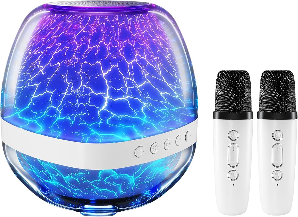Karaoke Microphone Machine Toy for Adult Kids, Mini Portable Bluetooth Speaker with 2 Wireless Microphones for Girls 3-12 Years, Christmas Birthday Gift for 3 4 5 6 7 8 9 10 11 12 Years Old and Up