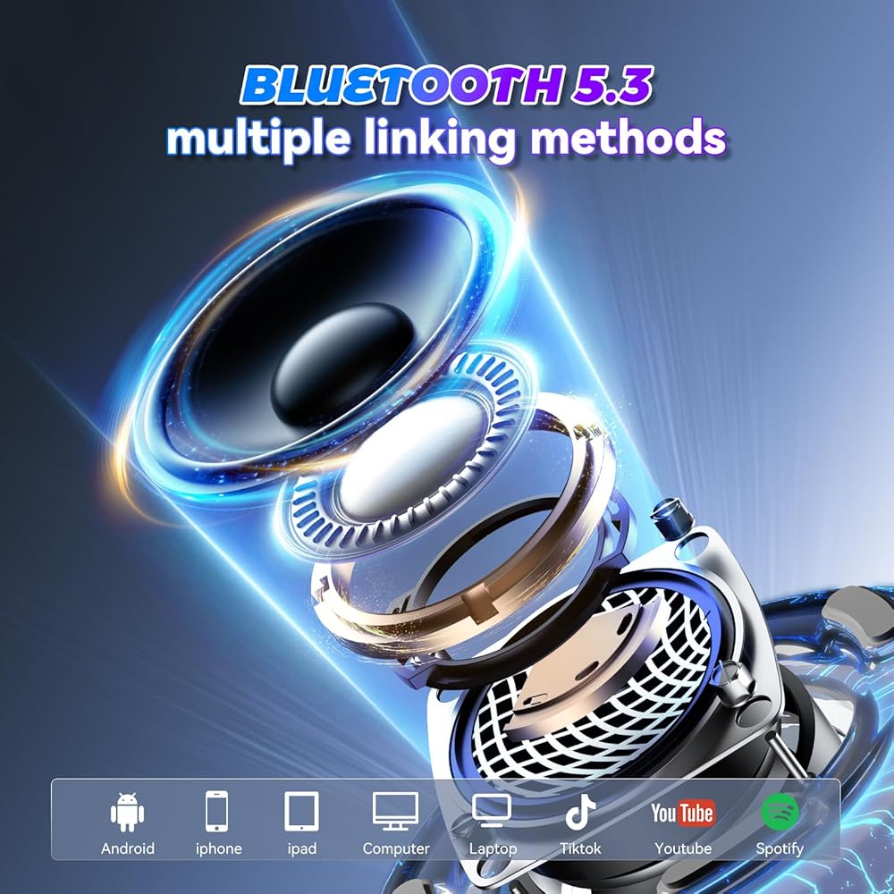 Bezaubernder Farbverlaufseffekt: Genießen Sie ein immersiveres Spielerlebnis mit dem Farbverlaufs-Lichteffekt unseres farbenfrohen kabellosen Lautsprechers, der RGB-Umgebungslicht zeigt, das auf die Musik reagiert und eine stimmungsvolle Spielatmosphäre schafft, die cooler und aufregender zu tragen ist.