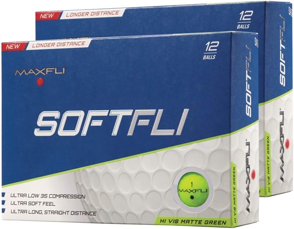 Blend unparalleled feel and performance while playing Maxfli SoftFli Matte Golf Balls. Maxfli's softest golf ball delivers feel and feedback on shots from tee to green. The reformulated core maintains faster ball speeds and lower spin for accuracy. Consistent flight characteristics are achieved through a high surface coverage 332 dimple pattern. A soft cover formulation with vivid matte coloration unlocks greater control and visibility.