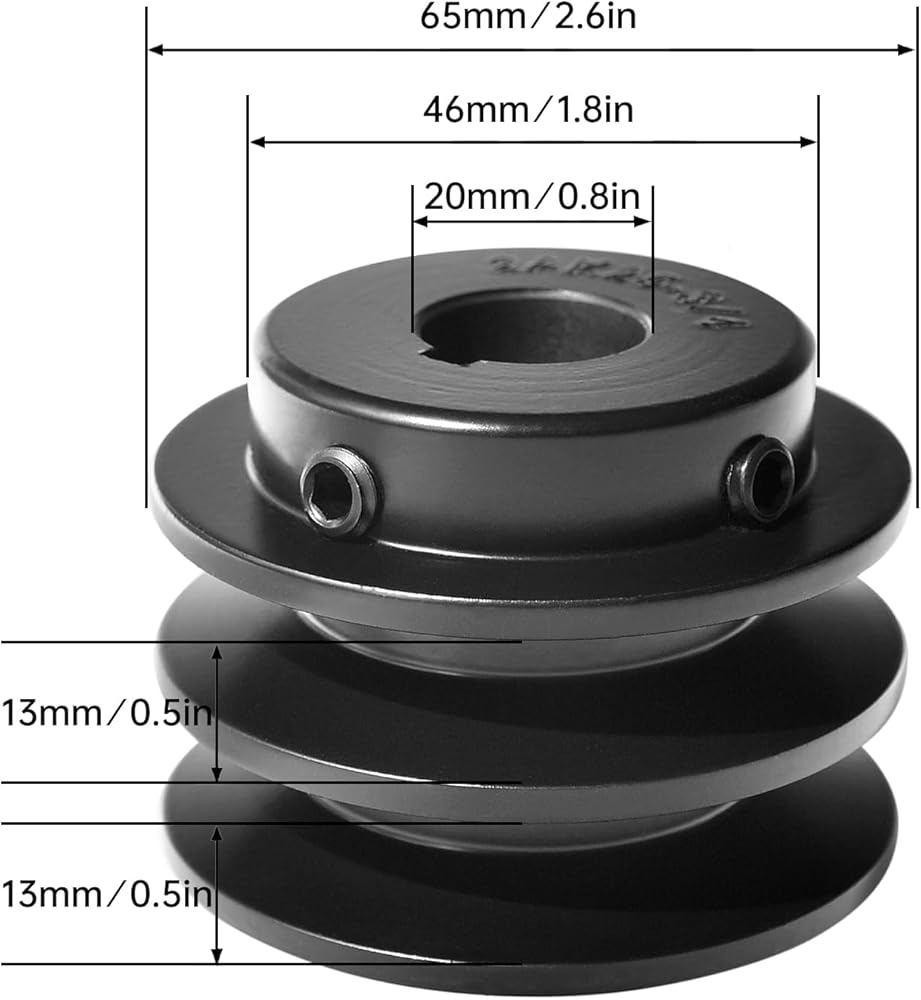 - Pulley Outside Diameter (O.D.): 2 1/2 inches, 2 Grooves.