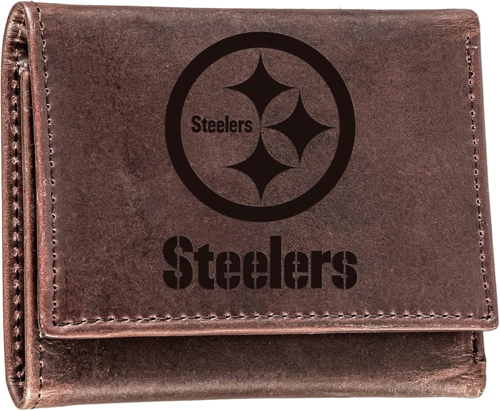 Evergreen Team Sports America NFL Pittsburgh Steelers Brown Wallet | Tri-Fold | Officially Licensed Stamped Logo | Made of Leather | Money and Card Organizer | Gift Box Included